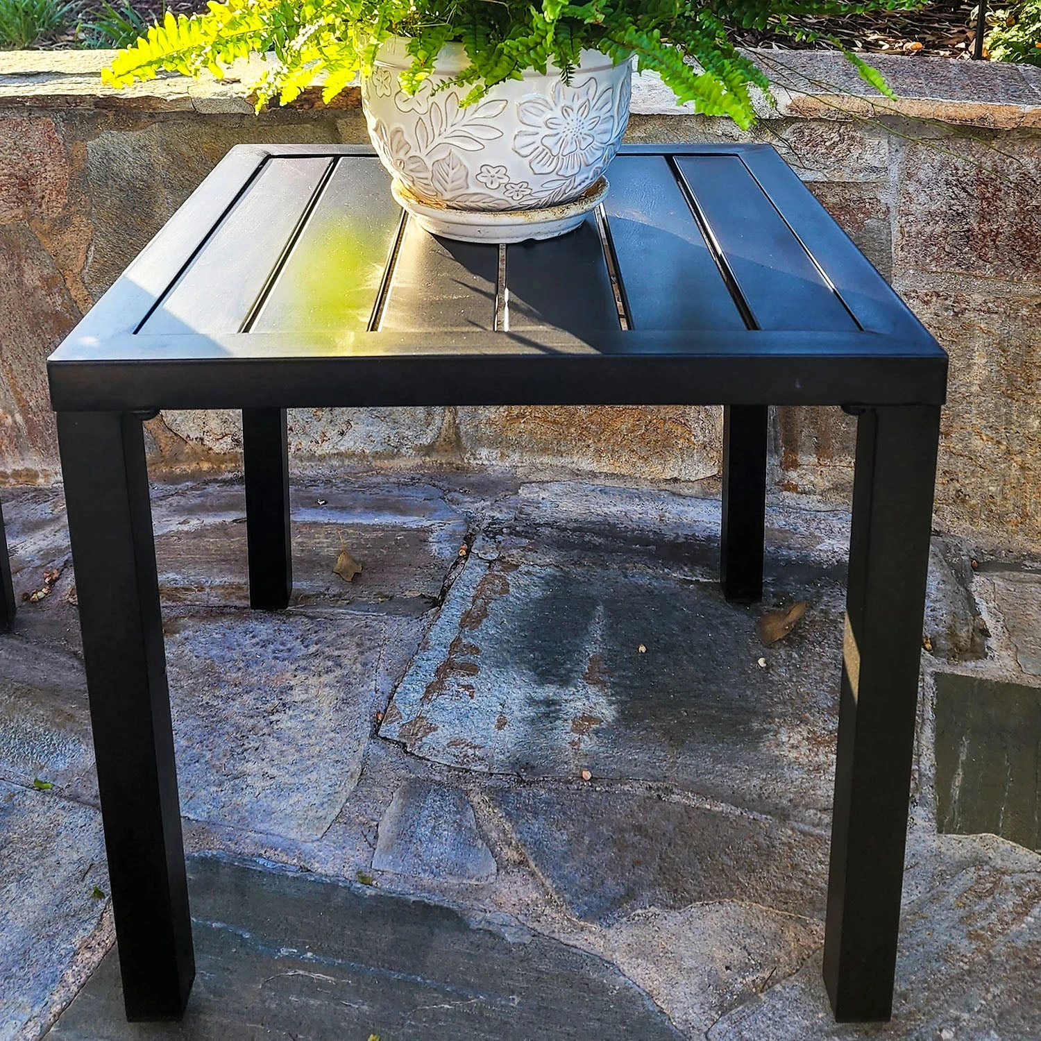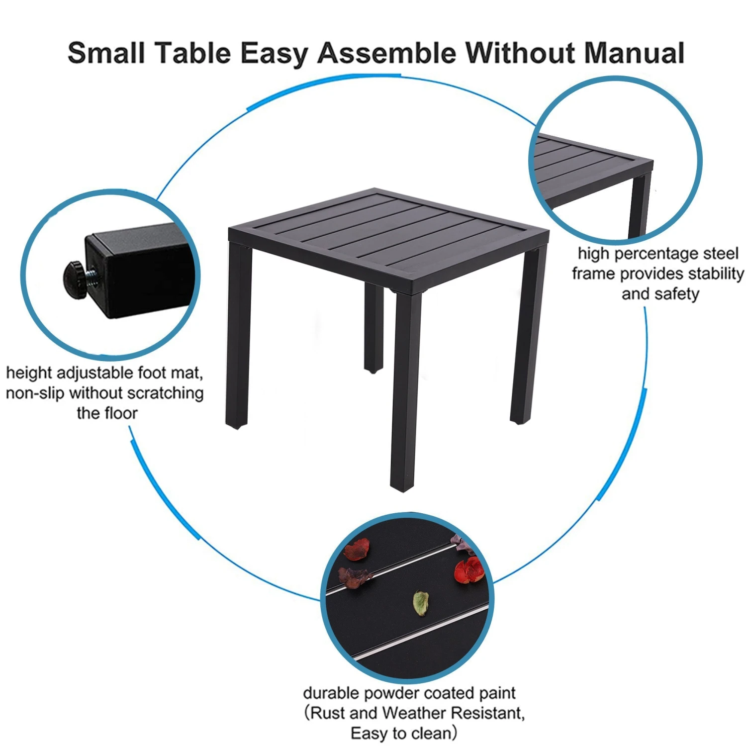 - The thick wood-like metal tabletop can be easily cleaned up with damp cloth and water