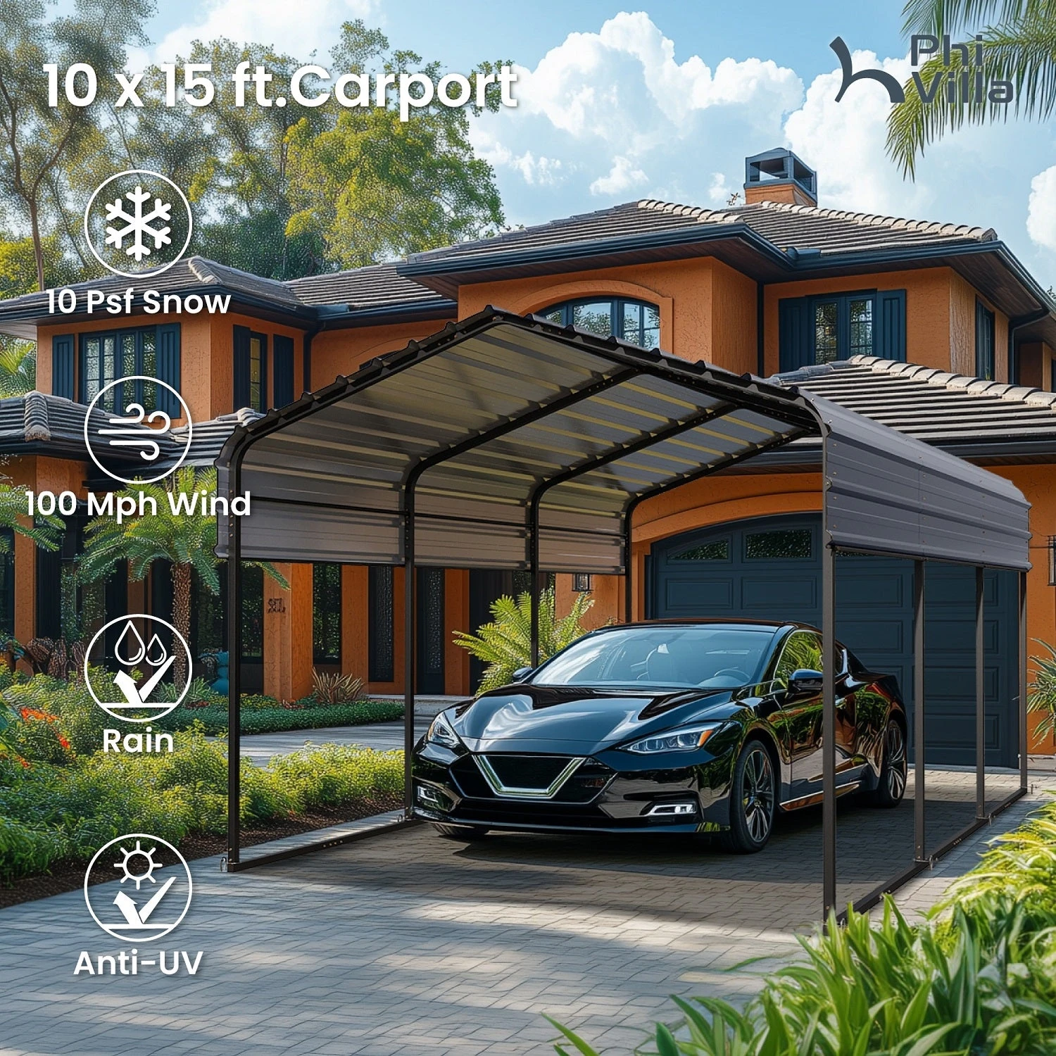- Durable Galvanized Steel Construction: The robust galvanized steel roof and frame offer lasting protection against corrosion, rust, and harsh weather, ensuring a dependable shelter for your vehicle.
