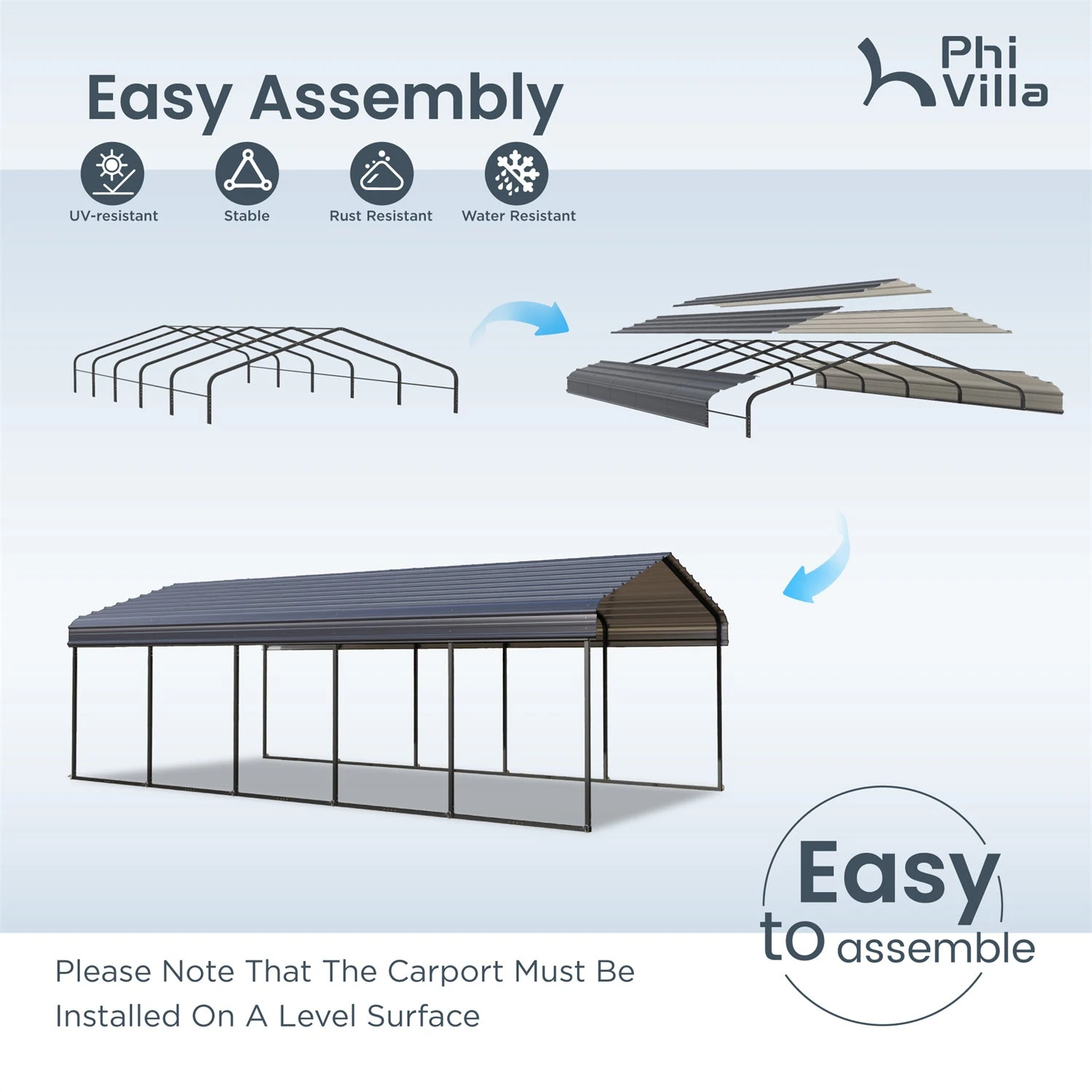 - Easy Assembly and Installation: Designed for effortless setup, this carport features slip-fit connections with pilot holes and self-drilling screws for quick assembly straight out of the box, eliminating installation hassle.