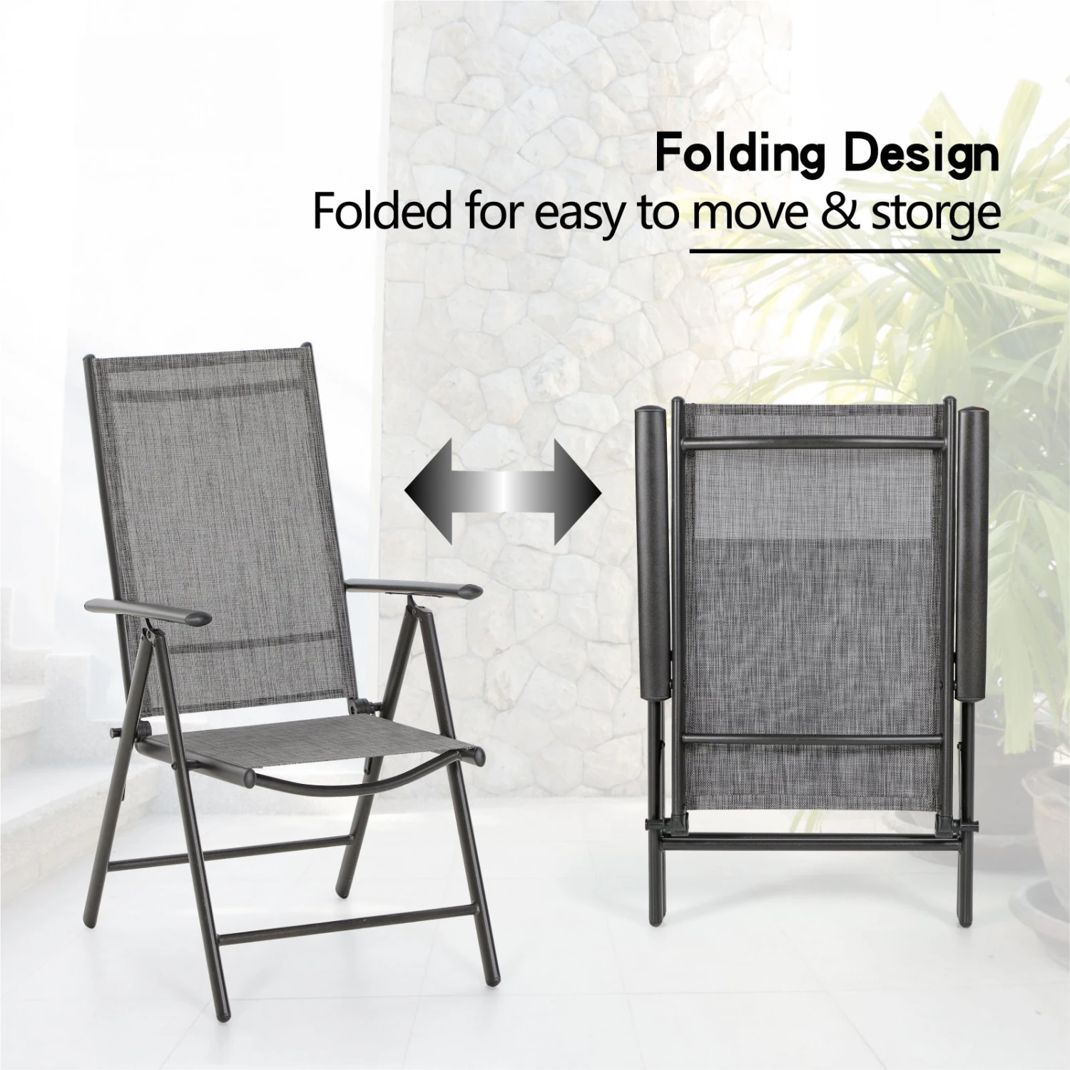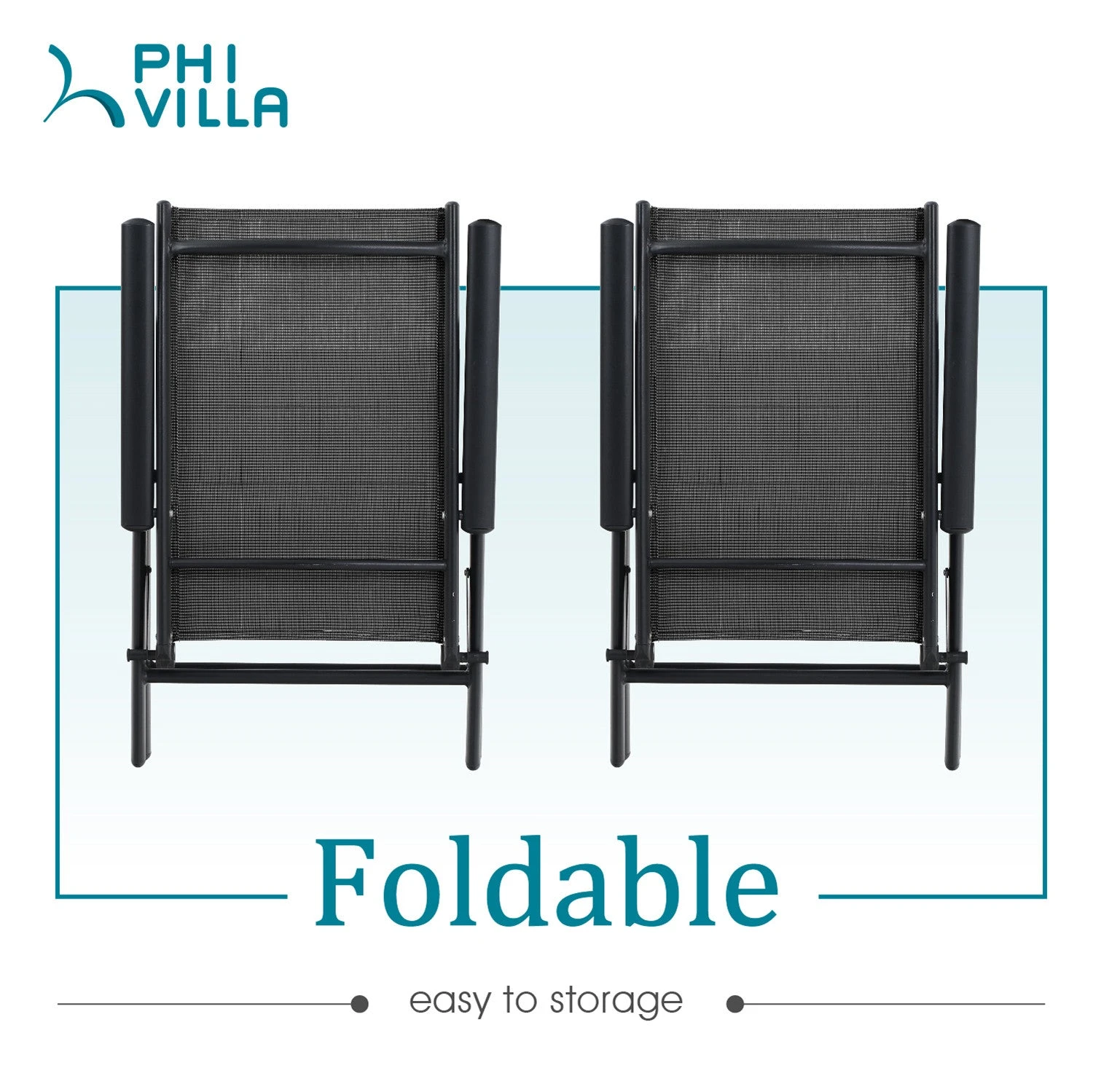 - Adjustable Reclining Chairs: With a 7-lock-mechanism, you can adjust a perfect slope and most comfortable angle for your back. Due to the chairs’ foldable design makes them more convenient for use and storage, assembly is not requested.