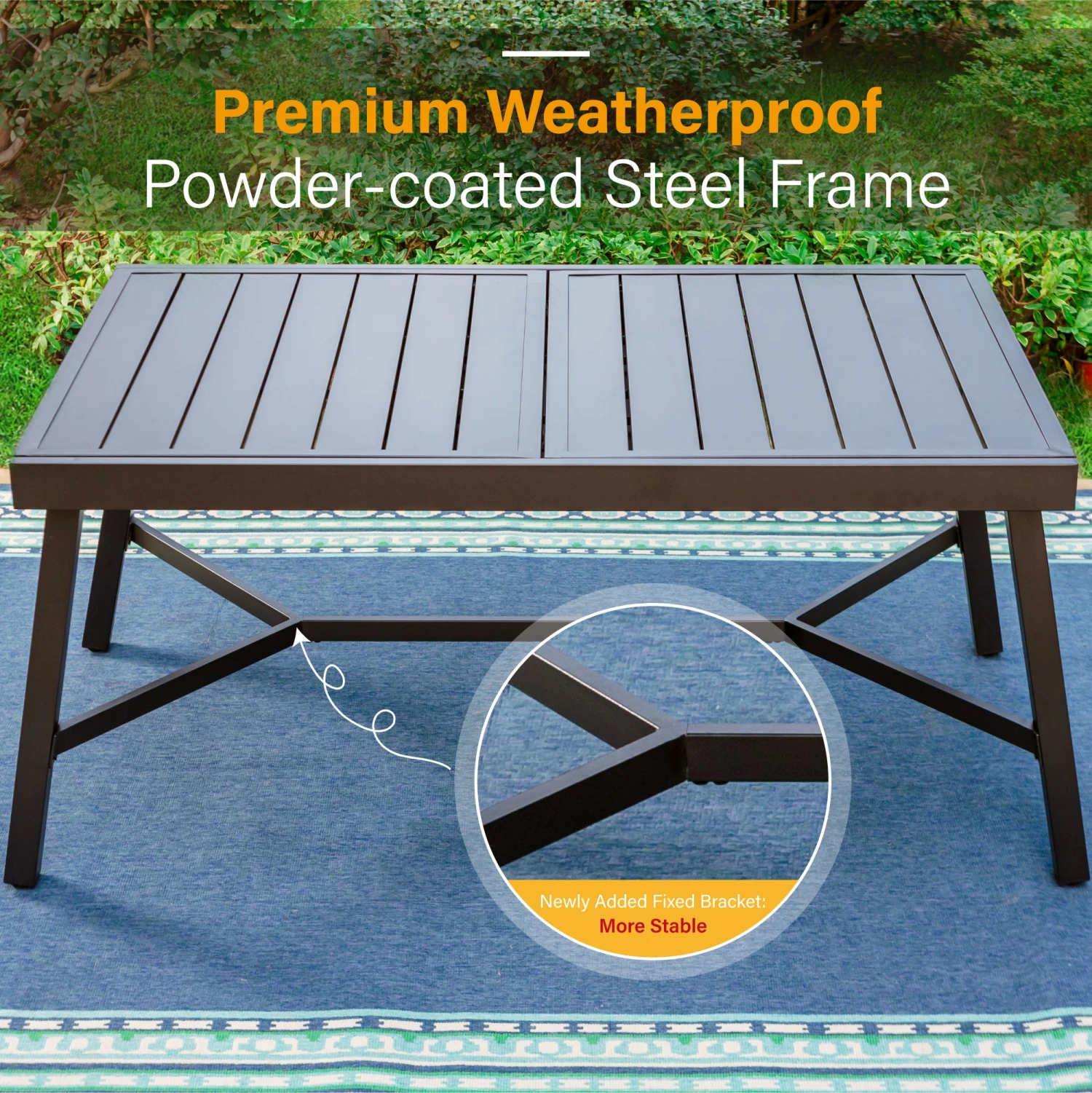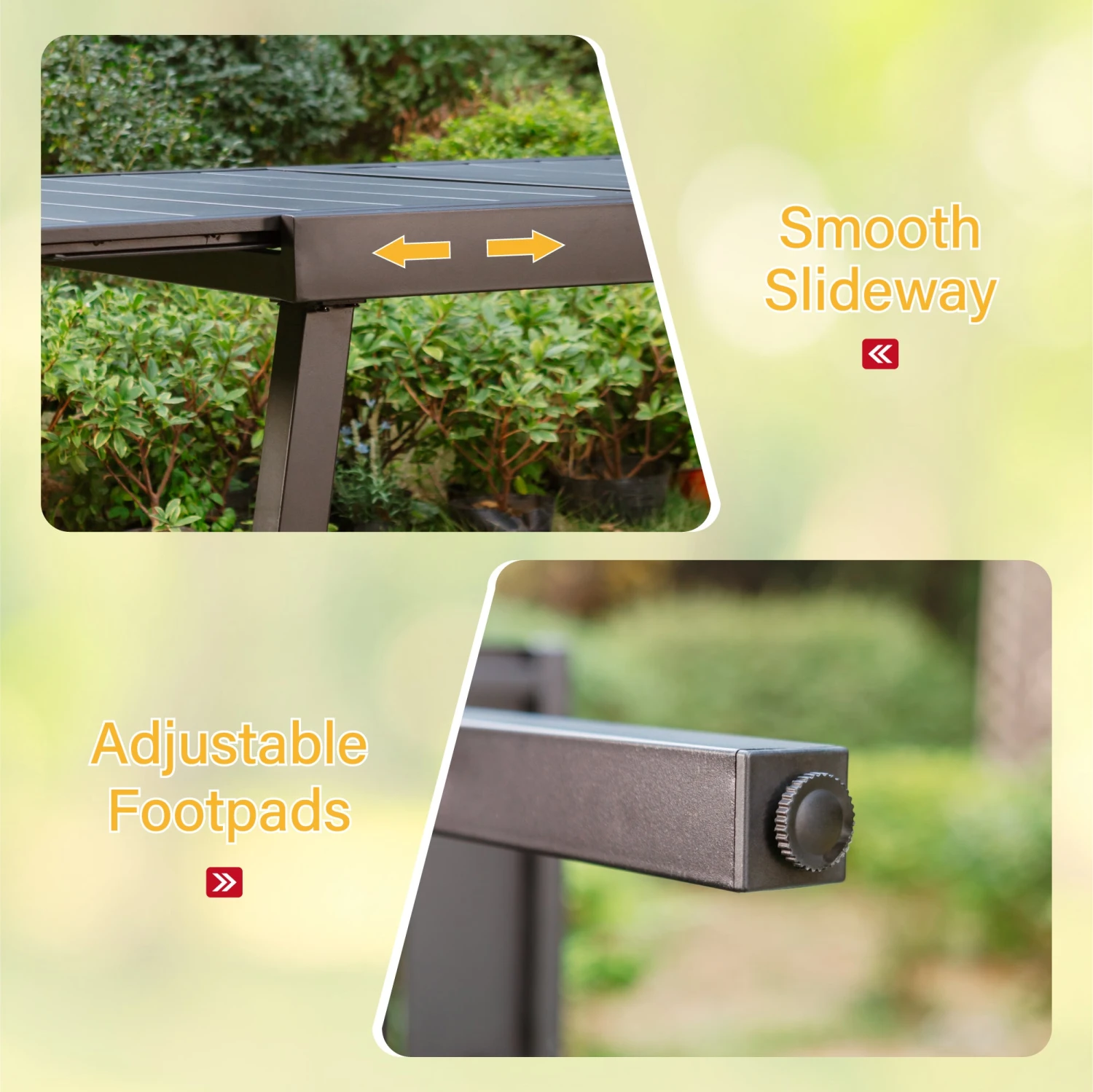 - Extendable Design: Metal dining table has thick metal slat top with e-coat layer and premium powder finish that is rust and weather resistant rust and weather resistant. The expandable design makes it easy to turn the table into a convenient and practical use for 6 to 8 people. Non-slip feet for uneven floors to prevent floor scratches.