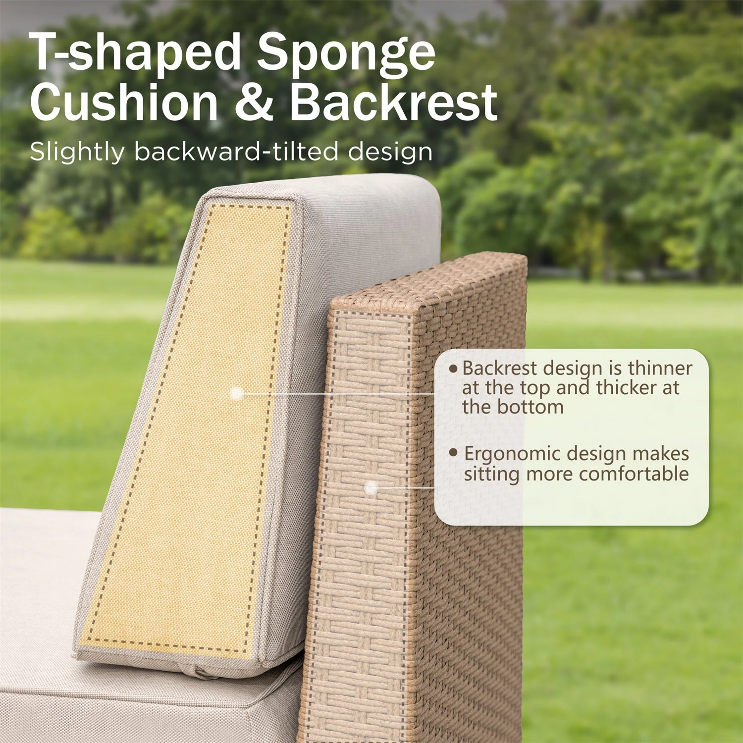 - Double-Shelving Wicker Table: The outdoor sofa features a double-shelving wicker table, providing generous storage space and a sturdy surface, perfectly blending style and durability for outdoor settings.