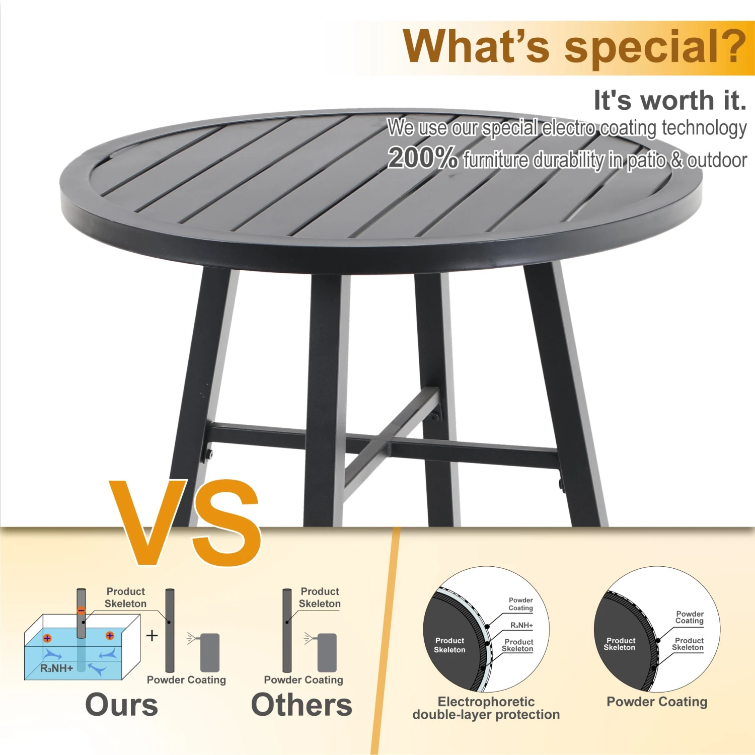 - Durable structure: This table uses a heavy-duty metal frame, which is resistant to rust and weather. It does not require special care and maintenance, has a long service life, and is suitable for long-term outdoor use.