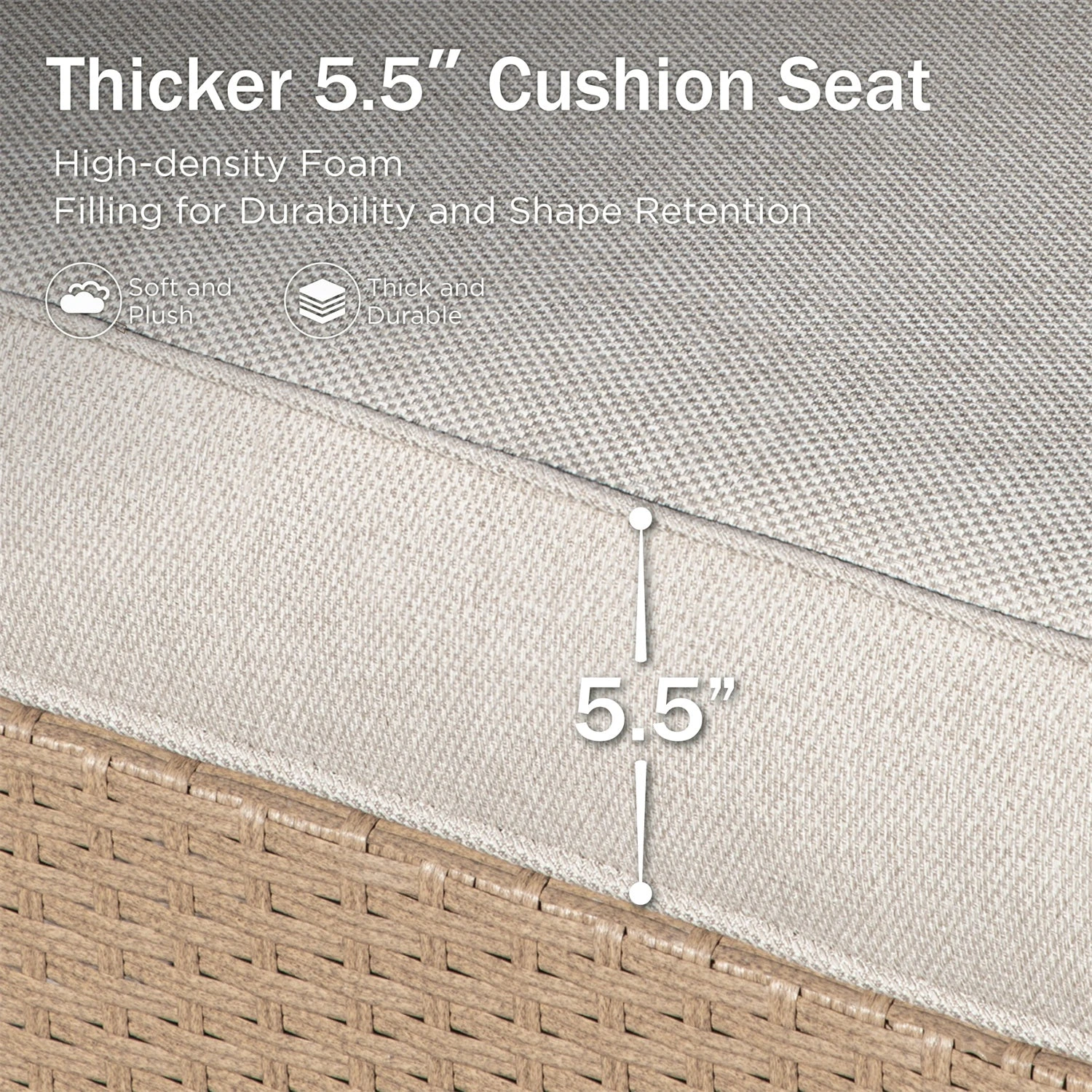 - Double-Shelving Wicker Table: The outdoor sofa features a double-shelving wicker table, providing generous storage space and a sturdy surface, perfectly blending style and durability for outdoor settings.
