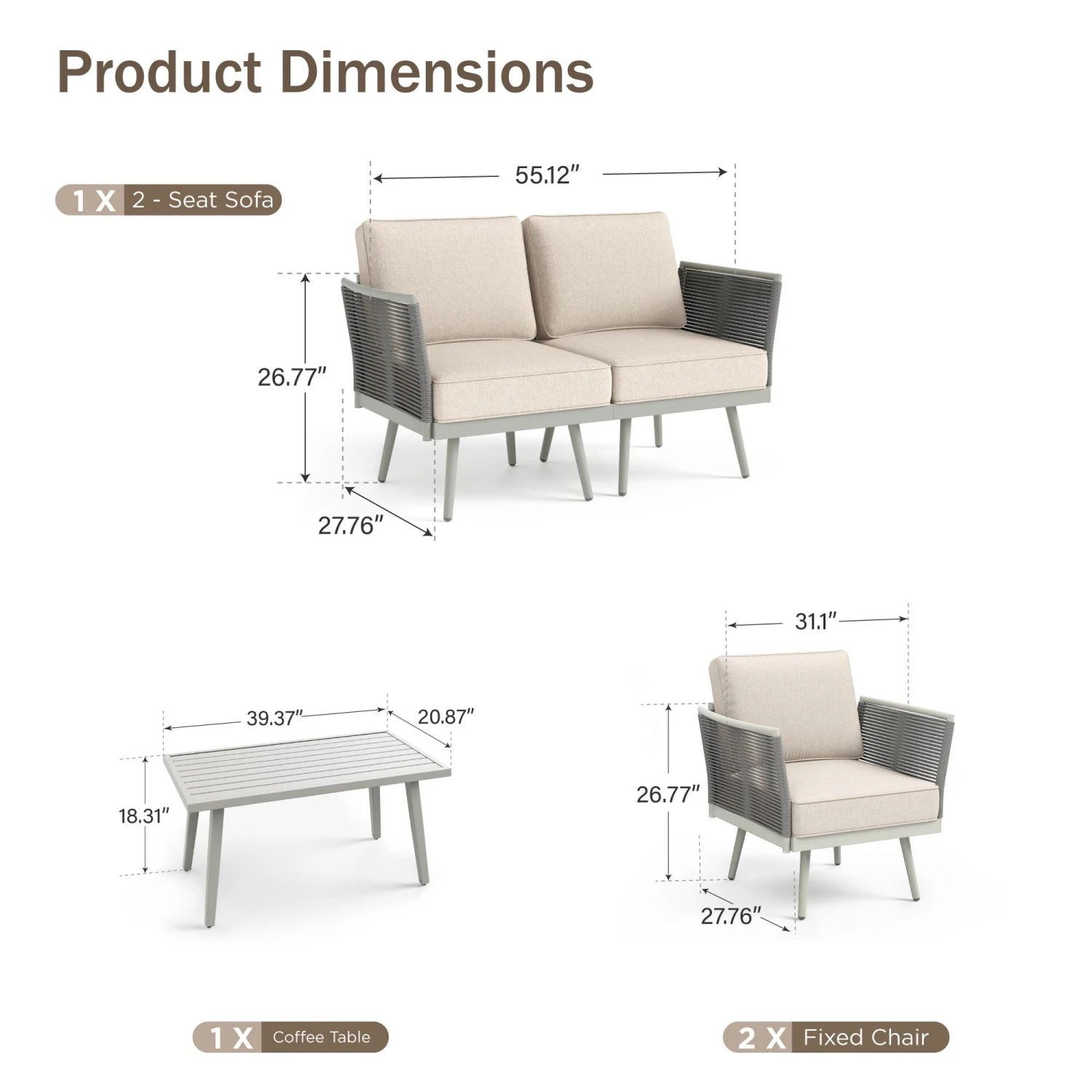 Single Seat Sofa: 31.1″W x 27.76″D x 26.77″H