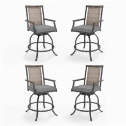 PHI VILLA Outdoor Steel Swivel Cushioned Bar Stools With Pillows