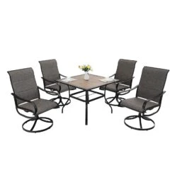 PHI VILLA 5-Piece Outdoor Patio Dining Set With Wood-look Table And 4 Pattern Swivel Chairs
