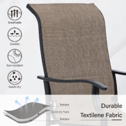 PHI VILLA 5-Piece Patio Dining Set With Round Steel Table & 4 Swivel Padded Textilene Chairs