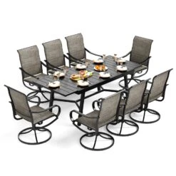 7/9-Piece Patio Dining Set With Extendable Table & Upgraded Padded Swivel Chairs PHI VILLA